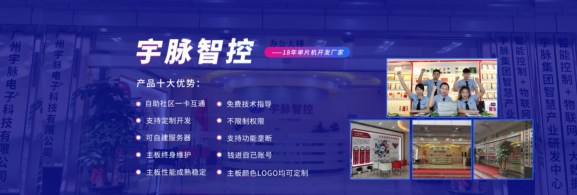 公司前身是2003年成立的宇脈電子石牌經(jīng)營部,在廣州新賽格電子城擁有兩個(gè)實(shí)體店,專注于單片機(jī)開發(fā)、電子產(chǎn)品定制開發(fā)。2014年正式更名為廣州宇脈電子科技有限公司,專注打造無人值守自助設(shè)備控制系統(tǒng)及后臺(tái)管理系統(tǒng)方案定制的國家高新技術(shù)企業(yè)。并成為集研發(fā)、生產(chǎn)、銷售和服務(wù)于一體的領(lǐng)軍企業(yè)。